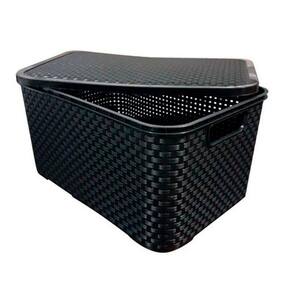 Caixa Organizadora 7 litros Empilhável Rattan Essa caixa é perfeita para ajudar na organização da sua casa ou escritório de uma forma simples e elegante. ?-tima para guardar acessórios, roupas de cama, livros, maquiagens, documentos entre outros objetos. Feita em plástico resistente, toda trabalhada com textura de tramas. Pode empilhar mais de uma caixa, além de otimizar o espaço, deixa os utensílios mais organizados. ESPECIFICAÇÕES:- Material: Plástico- Dimensões: 16cm altura x 28cm comprimento x 18cm largura- Capacidade: 07 litros- Cor: Preta - Peso: Aprox. 300gContém:01 Caixa Organizadora 07 litros Rattan Caixa Organizadora 7 litros Empilhável Rattan Essa caixa é perfeita para ajudar na organização da sua casa ou escritório de uma forma simples e elegante. Ótima para guardar acessórios, roupas de cama, livros, maquiagens, documentos entre outros objetos. Feita em plástico resistente, toda trabalhada com textura de tramas. Pode empilhar mais de uma caixa, além de otimizar o espaço, deixa os utensílios mais organizados. ESPECIFICAÇÕES:- Material: Plástico- Dimensões: 16cm altura x 28cm comprimento x 18cm largura- Capacidade: 07 litros- Cor: Preta - Peso: Aprox. 300gContém:01 Caixa Organizadora 07 litros Rattan