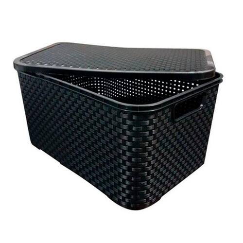 Caixa Organizadora Rattan Cesto com Tampa 7 Litros Caixa Organizadora 7 litros Empilhável Rattan Essa caixa é perfeita para ajudar na organização da sua casa ou escritório de uma forma simples e elegante. Ótima para guardar acessórios, roupas de cama, livros, maquiagens, documentos entre outros objetos. feita em plástico resistente, toda trabalhada com textura de tramas. Pode empilhar mais de uma caixa, além de otimizar o espaço, deixa os utensílios mais organizados.