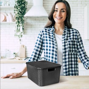 Descrição: Caixa Organizadora Rattan com Tampa 7 Litros Preto Arqplast