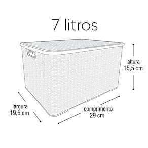 Especificação: A Caixa Organizadora produzida em plástico de alta durabilidade e com tampa, irá facilitar a organização de guarda roupas e armários, ou ambientes diversos na sua casa e trabalho. Nesse Rattan de 7 litros cabem pequenos objetos como: documentos, fotos, relógios, pulseiras, maquiagens, bijuterias, perfumes, roupas íntimas, meias, etc.