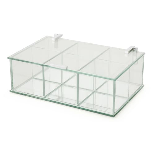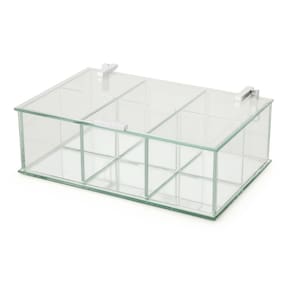 * caixa organizadora com tampa * estrutura de vidro * ideal para guardar condimentos * organizador multiuso * 6 divisórias