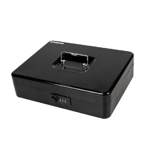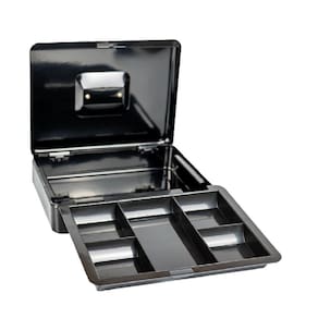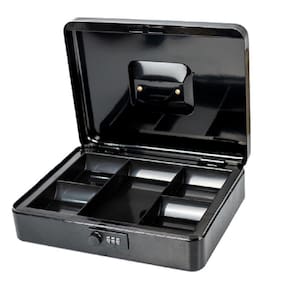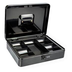 Disponível na cor PRETA com medida única ¿ Medida da caixa para dinheiro 90x300x240mm. Possui alça de transporte embutida, fechadura de combinação, bandeja de dinheiro removível.