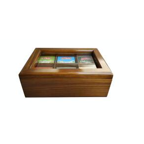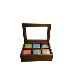 Prático e luxuoso, na linha madeira maciça encontrarmos um toque vintage, objeto decorativo onde são visíveis os veios naturais da madeira. Nossos estojos/caixas irão facilitar seu dia a dia com a organização para os saches de Chá, além de proporcionar um ambiente mais sofisticado e elegante.Produzida com madeira natural de reflorestamento. Escolhida rigorosamente, totalmente tratada, tingida e envernizada externamente. Internamente. Na linha madeira maciça é possível observar os veios naturais da madeira. A tampa possui visor com vidro transparente. O acabamento interno com as divisórias é feito na própria madeira.Características das caixas para chá:- Produto fabricado em madeira maciça de qualidade,- Não empena,- Tampa de vidro 2 mm,- Medidas aproximadas dos casulos (larg x comp x alt): 7,5 x 7,5 x 7,0 cm. Chás não acompanham o estojo - Imagens meramente ilustrativas