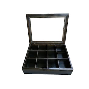 Prático e luxuoso, na linha madeira maciça encontrarmos um toque vintage, objeto decorativo onde são visíveis os veios naturais da madeira. Nossos estojos/caixas irão facilitar seu dia a dia com a organização para os saches de Chá, além de proporcionar um ambiente mais sofisticado e elegante. Produzida com madeira natural de reflorestamento. Escolhida rigorosamente, totalmente tratada, tingida e envernizada externamente. Internamente. Na linha madeira maciça é possível observar os veios naturais da madeira. A tampa possui visor com vidro transparente. O acabamento interno com as divisórias é feito na própria madeira. Características das caixas para chá: Padrão Ébano; Produto fabricado em madeira maciça de qualidade; Não empena; Tampa de vidro 2 mm; Medidas aproximadas dos casulos larg x comp x alt : 7,5 x 7,5 x 7,0 cm. Chás não acompanham o estojo Imagens meramente ilustrativas Ean: 7898668010829