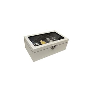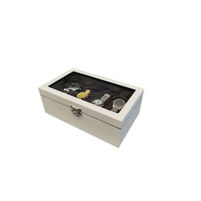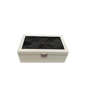- Produto fabricado em madeira maciça de qualidade - Não empena, não trinca, não racha - Revestimento interno aveludado, inclusive as bandejas. - Acompanham 3 bandejas para relógios. - Fecho giratório de pressão em metal suporta cadeado - Tampa de vidro 2 milímetros. - Medidas aproximada da caixa: 11 cm de altura, 30 cm de comprimento, 17 cm de largura.