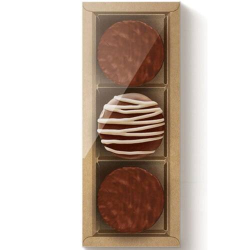 A Caixa Para 3 Pão de Mel é uma embalagem prática e charmosa, ideal para presentear ou vender essas delícias. Com um design que combina papel cartão e tampa cristal, ela proporciona uma apresentação atraente e segura.
