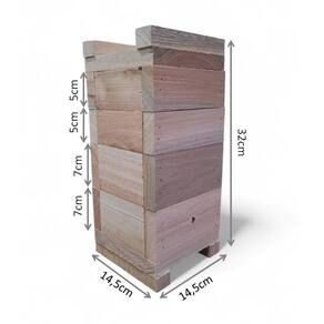 O design funcional com duas melgueiras facilita a coleta do mel e a expansão da colônia, tornando o manejo mais prático e produtivo. Além disso, a resistência do eucalipto garante longa vida útil ao produto, mesmo em ambientes externos.