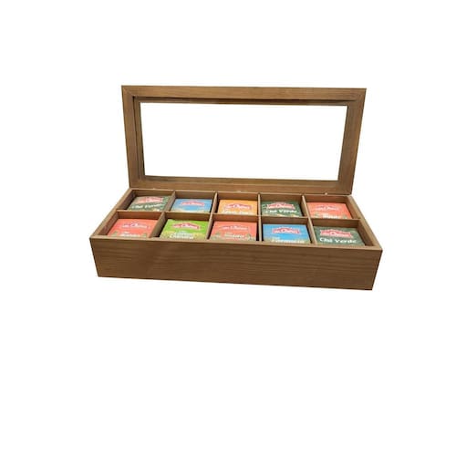 Prático e luxuoso, na linha madeira maciça encontrarmos um toque vintage, objeto decorativo onde são visíveis os veios naturais da madeira. Nossos estojos e caixas irão facilitar seu dia a dia com organização, beleza , segurança, higiene e praticidade que seus saches precisam , além de proporcionar um ambiente mais sofisticado e elegante para o que você deseje acondicionar. Produzida com madeira natural de reflorestamento. Escolhida rigorosamente, tratada com fungicidas e anti cupins. Na linha madeira maciça é possível observar com facilidade os veios naturais da madeira. Este modelo especificamente, desta linha, não possui nenhuma camada protetora como seladora ou verniz nem internamente nem externamente , apenas é utilizado um tingidor para dar a tonalidade na madeira. Sendo assim, considerado uma peça rústica. As dobradiças não são aparentes e possuem um limitador. A tampa possui visor com vidro transparente. Características das caixas para chá: