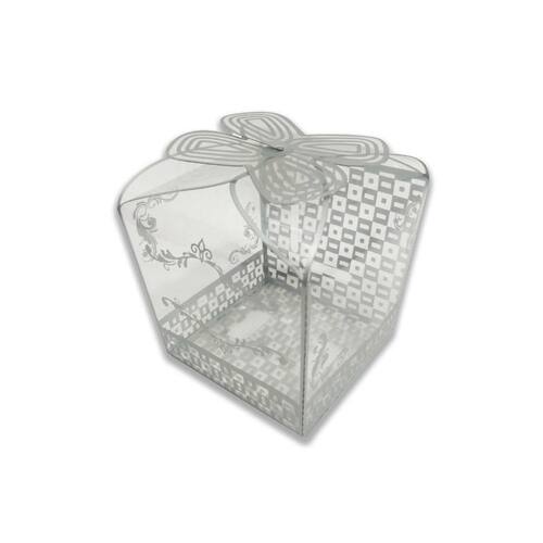Características: - Caixa transparente com detalhes prata - Material 100% reciclável - Produto atóxico e não perecível - Material de qualidade - Fácil montagem - Sem necessidade de cola ou adesivo - Berço para posicionar o cupcake