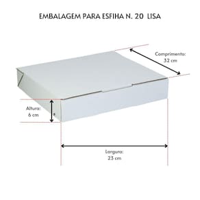Embalagem para esfihas e salgados, fabricada com papelão ondulado com uma face na cor branca outra na cor parda (marrom). Impressão padrão em duas cores. Uma embalagem que se diferencia pelo baixo custo e praticidade. É a caixa muito usada pelas padarias, lojas de salgados, doceiras, salgadeiras.