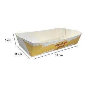 A Caixa para Embalagem de Alimento Bandeja Grande Aberta para Porções Multiuso é ideal para servir porções maiores com praticidade. Com formato aberto e resistente, facilita o consumo direto na embalagem e contribui para uma boa apresentação dos alimentos. Suas dimensões aproximadas de 5 cm de altura, 18 cm de largura e 11 cm de profundidade oferecem espaço adequado para fritas, salgados, doces e combos. É indicada para uso em lanchonetes, food trucks, eventos e serviços de delivery. Produto fornecido em embalagem com 100 unidades, garantindo praticidade no dia a dia comercial.