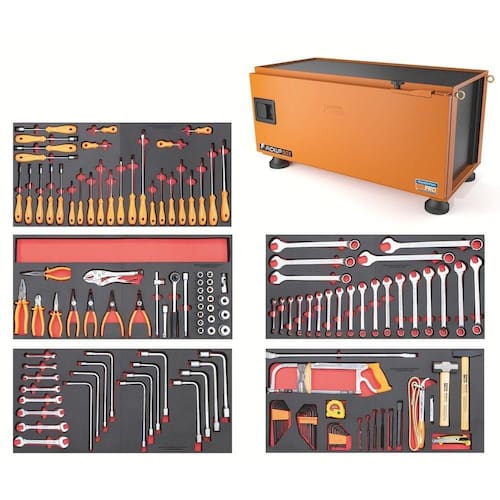 Projetada para facilitar a manutenção em campo, a caixa Pickup Box da Tramontina PRO encaixa perfeitamente na parte traseira de caminhonetes, o que proporciona mais flexibilidade, agilidade e redução de custos na manutenção de máquinas e equipamentos. O mecânico bota o pé na estrada e com as ferramentas em mãos, evita longos deslocamentos das fazendas até concessionárias ou oficinas de reparação. A caixa possui: 4 olhais para fixação da caixa na camionete, pés com sistema de amortecimento anti vibração (vibra stop), fechadura reforçada com chave, porta frontal com borracha de vedação que impede a entrada de poeira e água e dispositivo de trava da porta para locais com vento. Possui 5 gavetas com trancas individuais. Conta com mais de 1,8 metros quadrados de área para armazenamento de ferramentas, peças e acessórios para manutenção. A caixa pode ser personalizada quanto a cor e principalmente quanto a composição, que pode ser colocada em berços de EVA de 40 mm, deixando tudo no lugar durante o deslocamento.
