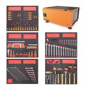 Projetada para facilitar a manutenção em campo, a caixa Pickup Box da Tramontina PRO encaixa perfeitamente na parte traseira de caminhonetes, o que proporciona mais flexibilidade, agilidade e redução de custos na manutenção de máquinas e equipamentos. O mecânico bota o pé na estrada e com as ferramentas em mãos, evita longos deslocamentos das fazendas até concessionárias ou oficinas de reparação. A caixa possui: 4 olhais para fixação da caixa na camionete, pés com sistema de amortecimento anti vibração (vibra stop), fechadura reforçada com chave, porta frontal com borracha de vedação que impede a entrada de poeira e água e dispositivo de trava da porta para locais com vento. Possui 5 gavetas com trancas individuais. Conta com mais de 3 metros quadrados de área para armazenamento de ferramentas, peças e acessórios para manutenção. A caixa pode ser personalizada quanto a cor e principalmente quanto a composição, que pode ser colocada em berços de EVA de 40 mm, deixando tudo no lugar durante o deslocamento.