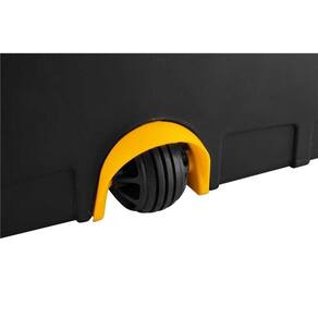 Destaques: A caixa superior possui duas travas plásticas frontais reforçadas, ganchos nas laterais para enrolar extensões elétricas de cabo fino, dois compartimentos externos na tampa, bandeja frontal destacável com múltiplas divisórias, bandeja interna removível e permite o travamento com cadeado. A caixa inferior possui duas travas laterais (permite o travamento com cadeados), ganchos traseiros para enrolar extensões elétricas de cabo médio e bandeja interna removível. Conta ainda com uma terceira roda para facilitar a movimentação da caixa, dando mais praticidade ao usuário.