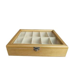 Caixa para Óculos C/10 Divisórias Cerejeira floco bege: Caixa para Óculos C/10 Divisórias Prático e luxuoso, na linha madeira maciça encontrarmos um toque vintage, objeto decorativo onde são visíveis os veios naturais da madeira. Nossos estojos irão facilitar seu dia a dia com a organização e segurança que sua coleção precisa, além de proporcionar um ambiente mais sofisticado e elegante. Produzida com madeira natural de reflorestamento. Escolhida rigorosamente, tratada com fungicidas e anticupins. Envernizada externamente com verniz poliuretano industrial. Internamente as laterais e divisórias são revestidas com nylon aveludado. E as almofadas que acompanham o produto, normalmente são também em tecido aveludado. Na linha madeira maciça é possível observar os veios naturais da madeira. As dobradiças não são aparentes e possuem um limitador. A tampa possui visor com vidro transparente. Acompanha um fecho giratório de pressão em metal, ideal para colocar cadeado. Seus relógios sempre bem protegidos e acomodados confortavelmente, com toda segurança e facilidade no manuseio.