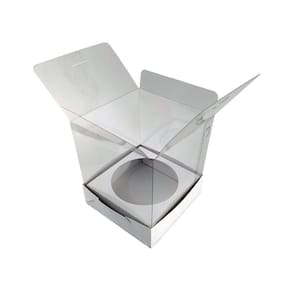 Conteúdo: 10 Conjuntos de Caixa de Panetone Cada conjunto contém uma Base de Papel, uma tampa de Acetato e um Berço de Papel.
