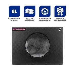 DESCRIÇÃO A Regency Box Pick Up 1×8" Dutada é uma caixa acústica compacta e funcional, desenvolvida para veículos com espaço limitado que exigem um desempenho sonoro eficiente. Projetada para abrigar um subwoofer de 8 polegadas com saída por duto lateral de 2", proporciona graves mais profundos e direcionados sem comprometer o espaço interno do veículo. Sua construção sólida em MDF de alta espessura, aliada ao acabamento em courvin perfurado preto e manta isolante, garante robustez, isolamento acústico eficaz e som preciso. O design simples e prático assegura fácil integração em compartimentos de pick-ups ou ambientes automotivos com restrição de espaço.