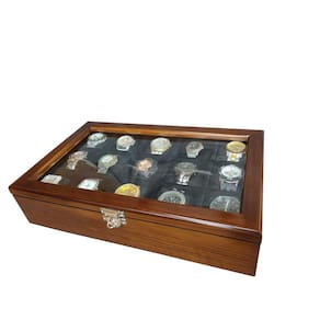 Caixa para relógio com 15 divisórias tabaco floco preto Prático e luxuoso, na linha madeira maciça encontrarmos um toque vintage, objeto decorativo onde são visíveis os veios naturais da madeira. Nossos estojos irão facilitar seu dia a dia com a organização e segurança que sua coleção precisa, além de proporcionar um ambiente mais sofisticado e elegante. Produzida com madeira natural de reflorestamento. Escolhida rigorosamente, totalmente tratada, tingida e envernizada externamente. Internamente, inclusive as divisórias são revestidas com nylon aveludado e as almofadas que acompanham o produto, normalmente são também em tecido aveludado. Na linha madeira maciça é possível observar os veios naturais da madeira. As dobradiças não são aparentes e possuem um limitador. A tampa possui visor com vidro transparente. Acompanha um fecho giratório de pressão em metal, ideal para colocar cadeado. Seus relógios sempre bem protegidos e acomodados confortavelmente, com toda segurança e facilidade no manuseio. características das caixas para relógio: - padrão marfim, flocado internamente de preto; - produto fabricado em madeira maciça de qualidade; - não empena; - revestimento interno aveludado, inclusive as divisórias; - fecho giratório de pressão em metal suporta cadeado ; - tampa de vidro 2 mm; - acompanha almofadas para todos os casulos - medidas aproximadas dos casulos larg x comp x alt : 7,5 x 7,5 x 7,0 cm. Relógios não acompanham o estojo - imagens meramente ilustrativas