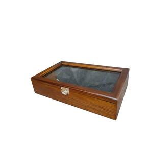 Produzida com madeira natural de reflorestamento. Escolhida rigorosamente, totalmente tratada, tingida e envernizada externamente. Internamente, inclusive as divisórias são revestidas com nylon aveludado e as almofadas que acompanham o produto, normalmente são também em tecido aveludado. Na linha madeira maciça é possível observar os veios naturais da madeira. As dobradiças não são aparentes e possuem um limitador. A tampa possui visor com vidro transparente. Acompanha um fecho giratório de pressão em metal, ideal para colocar cadeado. Seus relógios sempre bem protegidos e acomodados confortavelmente, com toda segurança e facilidade no manuseio.