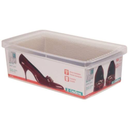 Caixa Para Sapato Média - 60200 - Ordene Caixa para Sapato Média - 60200 - ORDENE Descrição: A Caixa para Sapatos Ordene é ideal para organizar e conservar seu calçado, pois possui tampa que permite a ventilação. Com elas você ganhara espaço empilhando os pares, protegendo seus sapatos e facilitando sua identificação na hora de usar.
