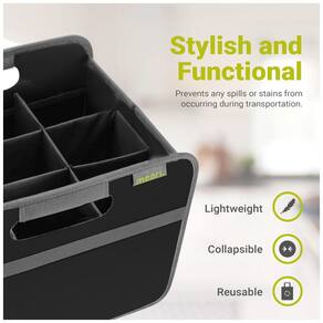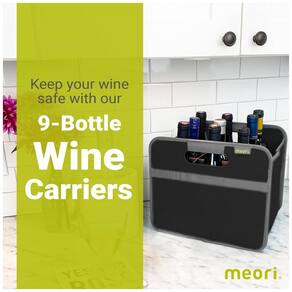 SUPORTA ATÉ 29 kg. Caixa resistente dobrável para transportar vinho ou outras garrafas cabe em champanhe. Alças reforçadas acolchoadas e dois bolsos de malha para guardar acessórios de vinho. A inserção pode ser removida e a caixa dobrável pode ser usada como cubo de zenamento. Adapta se a estantes padrão. Toalhetes limpos facilmente com esponja úmida. inserção pode ser dobrada para carregar menos de 9 garrafas, abrindo espaço para mantimentos ou taças de vinho e acessórios. Este porta vinho de luxo é um presente ideal para os entusiastas do vinho