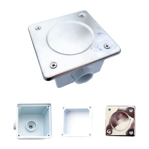 Com fabricação em termoplástico injetado, a caixa possui tampa em Aço inox, fixada com quatro parafusos em aço inox e quatro saídas opcionais de 3/4 soldável.