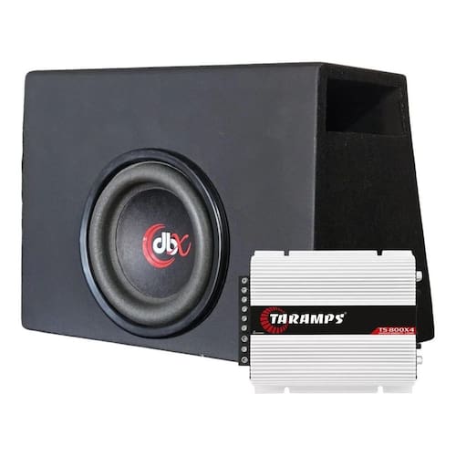 Caixa acústica subwoofer 8 polegadas 500 watts rms - 4 ohms Especificações técnicas: - frequência de ressonância fs ; 46,43 -fator mecânico qms ; 5,60 -fator elétrico qes ; 0,96 -fator total qts ; 0,82 -volume equivalente vas ; 14,12 -sensibilidade spl 1w/1m/free air ; 88,94 -resistencia re ; 3,12 Dimensões: Altura: 31cm Largura: 43cm Base inferior: 28cm Base superior: 19cm Duto régua 4.5 polegadas Peso: 9kg Acompanha módulo taramps amplificador som 800w 4 canais 2 ohms ts800x4 é projetado para atender a sistemas de áudio automotivo com entradas de fio de 4 canais individuais e acionamento automático, eliminando a necessidade de adaptadores. Com potência de 800 watts distribuídos em 4 canais e possibilidade de conexão em bridge, é compatível com diversos modelos de alto-falantes, drivers e super tweeters. Inclui entradas rca, ajuste de ganho e crossover fixo hpf, lpf e full . Especificações técnicas: Linha: linha ts Referência: ts 800x4 Número de canais: 4 12,6 vdc - 2 ohm: 800w rms 4 x 200w rms 12,6 vdc - 4 ohms: 500w rms 4 x 125w rms 12,6 vdc - 8 ohms: 240w rms 4 x 60w rms Relação de sinal / ruído: 96db Resposta de frequência: 10hz a 25khz Impedância de entrada: 10k ohm Sistema de proteção: curto na saída / alimentação baixa Tensão de alimentação mínima: 9 vdc Tensão de alimentação máxima: 16 vdc Consumo em repouso: 1,0a Consumo máximo musical: 12,6 vdc: 38a Consumo máximo em sinal senoidal: 1khz 12,6vdc: 76a Dimensões lxaxp : 184 x 54 x 190mm Peso: 1,40kg Marca: Não Informado