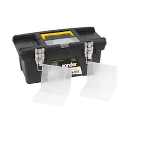 Conteúdo da Embalagem: 1 Caixa plástica Indicada para organizar, armazenar e transportar ferramentas, peças e acessórios em geral Possui duas travas, três compartimentos externos dois removíveis e bandeja para ferramentas removível Comprimento da caixa plástica:415,0 mm Largura da caixa plástica:210,0 mm Altura da caixa plástica:190,0 mm Material da caixa plástica:Polipropileno Cor da caixa plástica:Preta e amarela Capacidade de carga kgf :8 kgf Marca: Não Informado