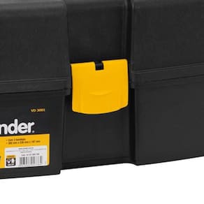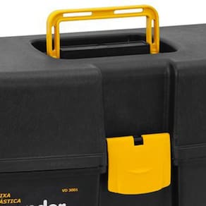 Caixa plástica Para Ferramentas Vonder. - Fabricado em polipropileno - Indicada para organizar, armazenar e transportar ferramentas, peças e acessórios em geral - Possui três bandejas fixas e articuladas com divisórias removíveis - Comprimento da caixa plástica mm :370,0 - Largura da caixa plástica mm :220,0 - Altura da caixa plástica mm :200,0 - Cor da caixa plástica:Preta e amarela - Capacidade de carga: 6 kg Ean: 7893946047764