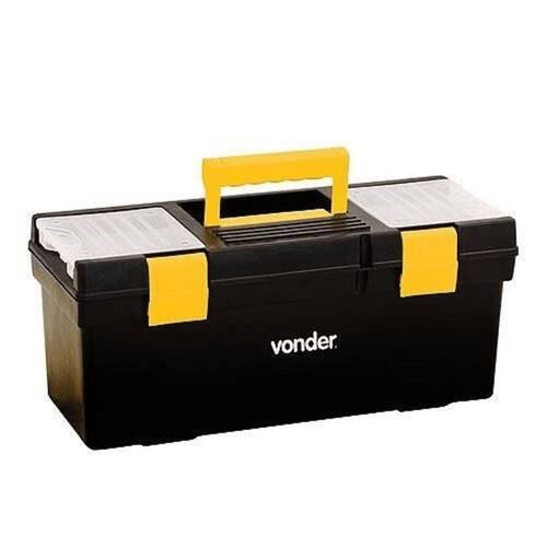 Indicada para guardar, organizar e transportar ferramentas diversas Possui duas travas, dois compartimentos externos e bandeja para ferramentas removível Capacidade máxima: 8Kg Fabricado em polipropileno Dimensões: Comprimento: 400mm Largura: 155mm Altura: 160mm Marca: VONDER Ref.VONDER-6105400000 Cor: Preto Ean: 7893946190828