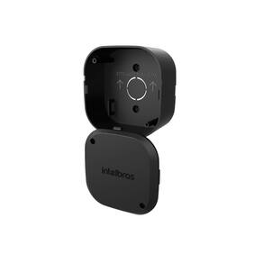 Possui um gancho de sustentação da tampa, permitindo sustentá-la enquanto estiver realizando a instalação da câmera. Confira ao lado na imagem.