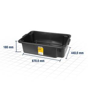 Caixa Plástica Retangular para Massa de 40 litros - 3315400000 - VONDER Recomendações de Uso:Indicada para construção civil Características Técnicas:- Capacidade da caixa: 20 ou 40 Litros- Material da caixa: Polipropileno- Cor da caixa: Preta- Garantia (CDC): Garantia legal: 90 dias Medidas da Caixa de 40 Litros:Comprimento da caixa: 670,0 mmLargura da caixa: 440,0 mmAltura da caixa: 180 mm * Imagens meramente ilustrativas.