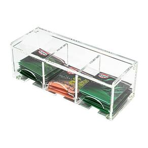Caixa Porta Sachês de Chá Chá com 3 Nichos Organização em Acrílico Cristal Tampa Articulada para Café