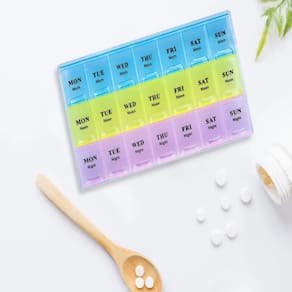 Mantenha seus medicamentos sempre organizados e ao seu alcance com o Porta Comprimidos Semanal Kangur.