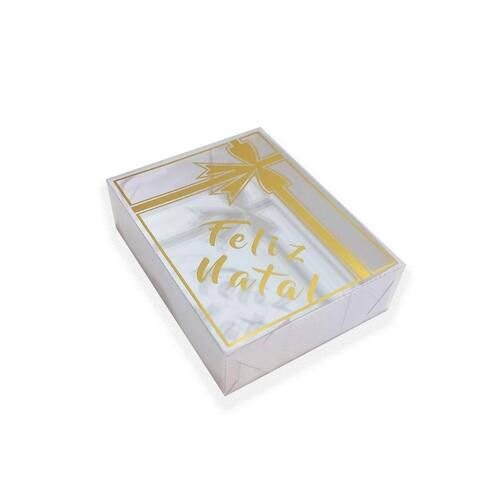 Embalagem Caixa de Presente Natal 15 x 11.5 x 4 cm, 10 unid, Duplex e Visor Acetato, Doces, Embala Cristal