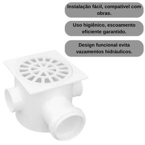 Com três entradas e saída dn50, a instalação é simples e rápida, permitindo conexões práticas em diferentes pontos de esgoto. Essa versatilidade facilita a adaptação em diversos tipos de obras, economizando tempo e garantindo eficiência na instalação.