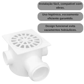 Com três entradas e saída dn50, a instalação é simples e rápida, permitindo conexões práticas em diferentes pontos de esgoto. Essa versatilidade facilita a adaptação em diversos tipos de obras, economizando tempo e garantindo eficiência na instalação.