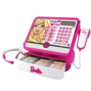 As meninas vão adorar fazer compras com a Caixa Registradora Fashion Store da Barbie! Bastante moderno e com muitas funções, o brinquedo acompanha 52 acessórios, como dinheirinhos, cartões e cupons de desconto.