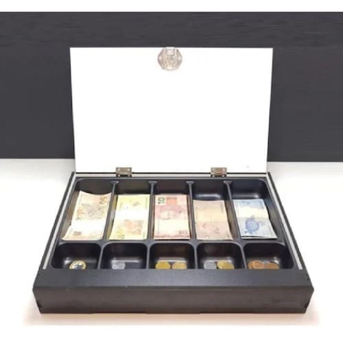 ESPECIFICAÇÕES: É kit: Não Pronta entrega. Com fechadura e chave reserva. Produto novo. Material: mdf revestido Cor: preto Dimensões: 40 cm de frente x 29 cm lateral x 7 cm de altura.