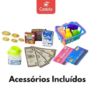 Caixa registradora com botões e funções realistas. Acompanha cesta com frutas coloridas e detalhadas. Estimula a imaginação, habilidades sociais e aprendizado numérico. Feito com materiais seguros e duráveis para crianças. Ideal para brincadeiras individuais ou em grupo. Transforme a diversão em aprendizado com a Caixa Registradora e Cesta de Frutas Castela, um presente que combina educação e entretenimento