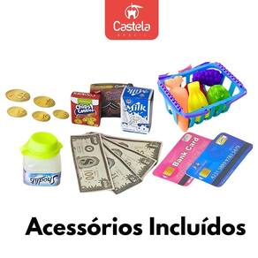 Caixa Registradora Infantil Som Luz Acessórios Castela Caixa Registradora e Cesta de Frutas Azul - Castela