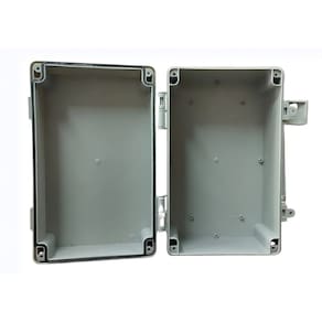 Estrutura robusta em acabamento cinza, proporcionando proteção eficiente para conexões elétricas e eletrônicas, mantendo instalações organizadas e seguras contra umidade, poeira e agentes externos, ideal para aplicações que exigem durabilidade e confiabilidade.
