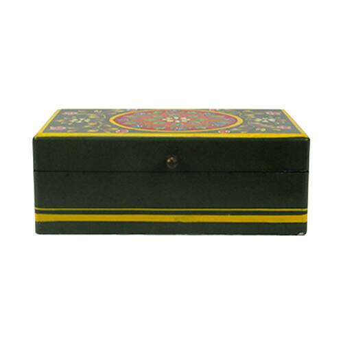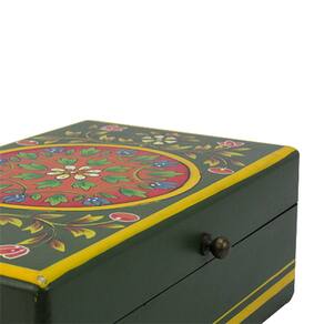 Esta deslumbrante caixa rústica verde com detalhes coloridos é a escolha ideal para adicionar um toque de elegância a ambientes diversos. Com dimensões de 9x25x15cm, ela combina estilo e funcionalidade de forma encantadora.