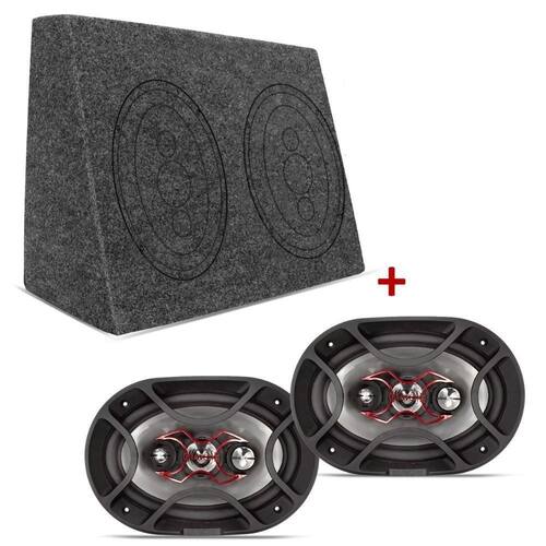 Kit Caixa de Som Selada 6x9 Carpete Grafite 14 Litros + Par de Alto Falantes 6x9 140RMS Linha X Bravox