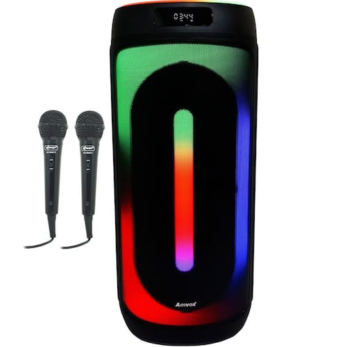 Itens inclusos: 1 Caixa de Som, 1 Cabo Auxiliar, 1 Carregador, 2 Microfone, 2 Adaptador P10 (6,5mm) para P2 (3,5mm), 1 Manual (português)
