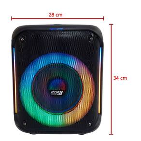 Medidas da caixa de som: 34 x 28 x 29 cm (altura x largura x profundidade)