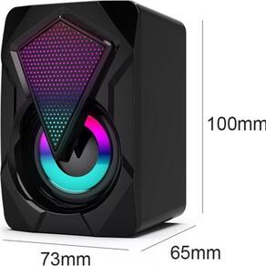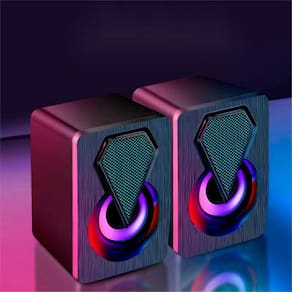 a caixa de som 2. 0 para computador ou dispositivos com saída p2 como notebooks, smartphones tablets, tvs entre outros oferece alto-falantes de alta qualidade e potência rms de 6w, com som nítido e preciso, acompanhados da iluminação rainbow, que acrescenta mais estilo ao seu setup. A caixa de som gamer é pensada para você ter o som perfeito durante o gameplay de seus jogos favoritos, como league of legends, , fortnite e cs:go. E também para você assistir seu filmes e series na smartv, notebook, celular ou tablet. Seu formato contribui para que não ocupe muito espaço. É uma das melhores opções entre os modelos de caixas de som disponíveis no mercado. Possui controle de volume e a alimentação de energia se dá por meio da entrada usb. Especificações técnicas: fonte de alimentação: 5v usb saída de áudio: 3,5 mm p2 som estéreo potência 2x 3w rms 6w rms comprimento do cabo: 120cm distância do cabo entre as caixas: 90cm taxa de isolação: 70db sensibilidade: -65db impedância: 4ohms dimensões: 9,5 x 6,5 x 6,5cm resposta de frequência: 20hz - 90khz possui controle de volume