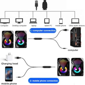Caixa de som para computador pc notebook portátil gamer jogos usb rgb potente subwoofer speaker projetor alto falante caixa de som rgb potente 6w 2x 3w para computador, pc, notebook, projetor, smart tv celular, tablet e smartphone