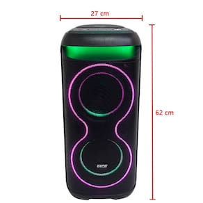 Medidas da caixa de som: 62 x 27 x 30 cm (altura x largura x profundidade)