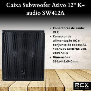 O subwoofer K-AUDIO SW412A é um poderoso e sofisticado sistema de reforço de graves projetado para elevar a qualidade sonora de suas experiências musicais e de entretenimento.